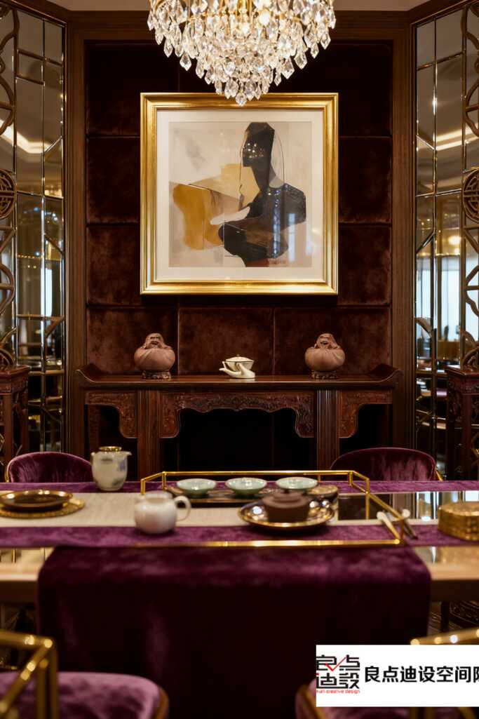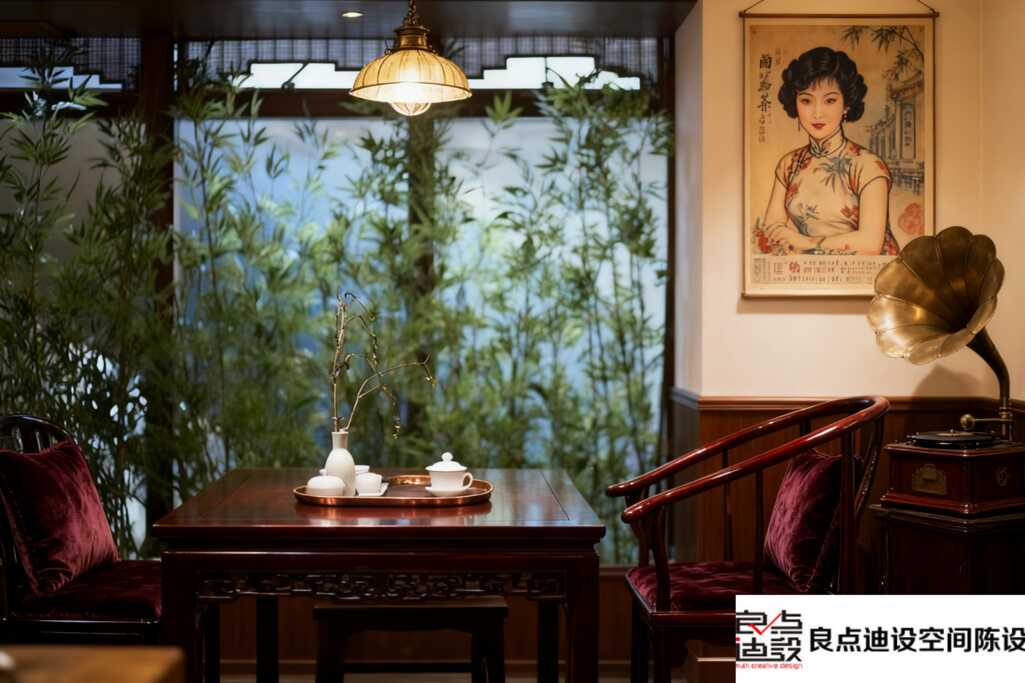 說實話,這套由 “良點迪設(shè)空間” 操刀的軟裝,真的贏在“氛圍敘事”。它沒堆砌元素,而是用絲絨、留聲機、海報、暖光這些符號,悄悄講了一個關(guān)于舊日海派風(fēng)情的沉浸式故事。在這兒,喝茶喝的都是情調(diào)。