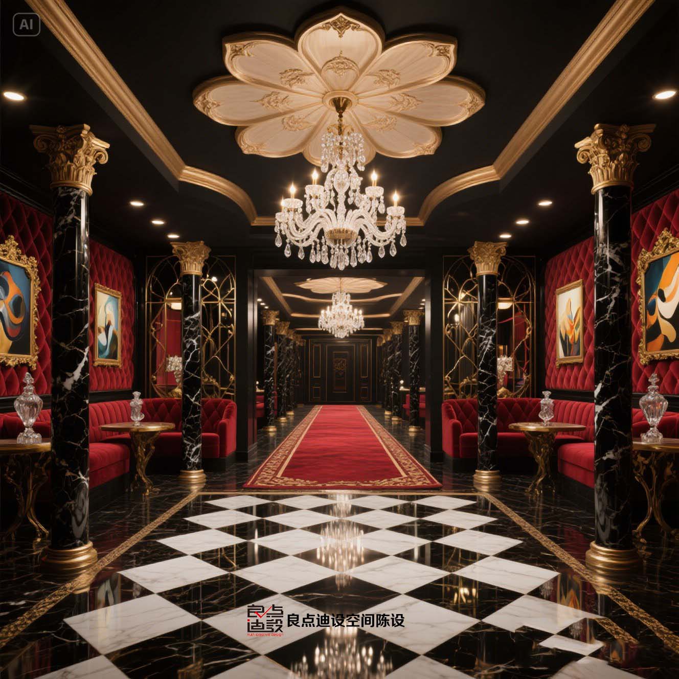 酒吧軟裝教科書(shū)!黑金穹頂+紅絲絨沙發(fā)裝修軟裝設(shè)計(jì)直接封神