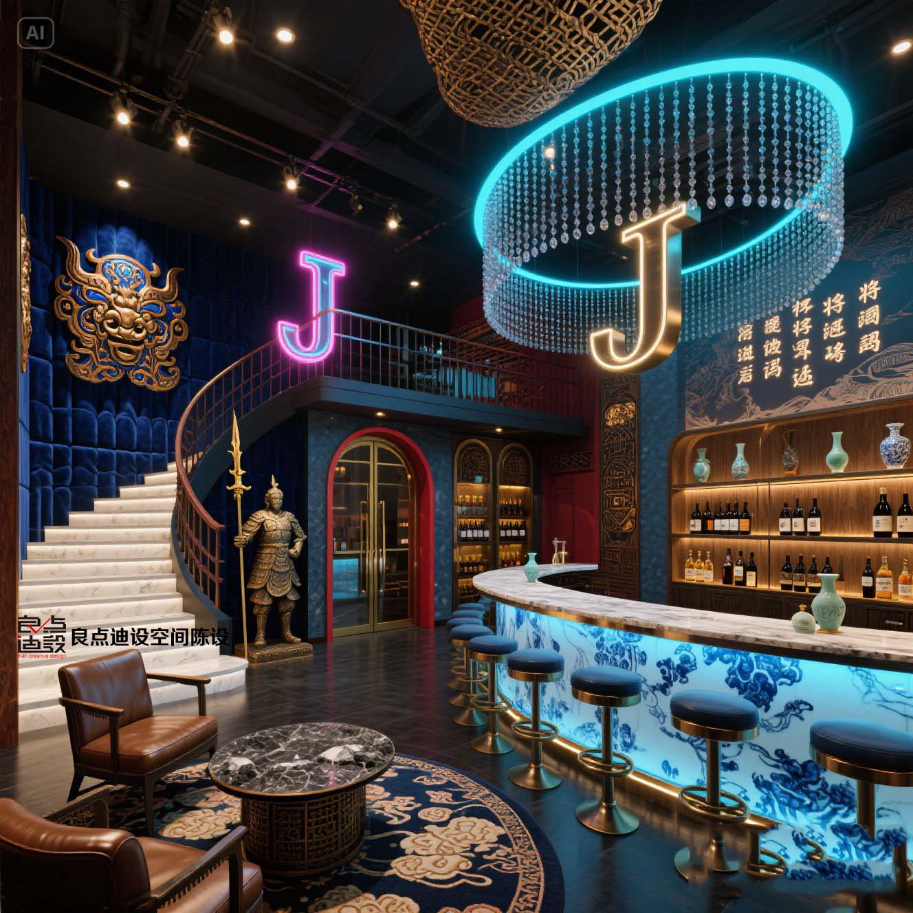 ??藍(lán)金CP暴擊!這家酒吧軟裝設(shè)計太上頭了!