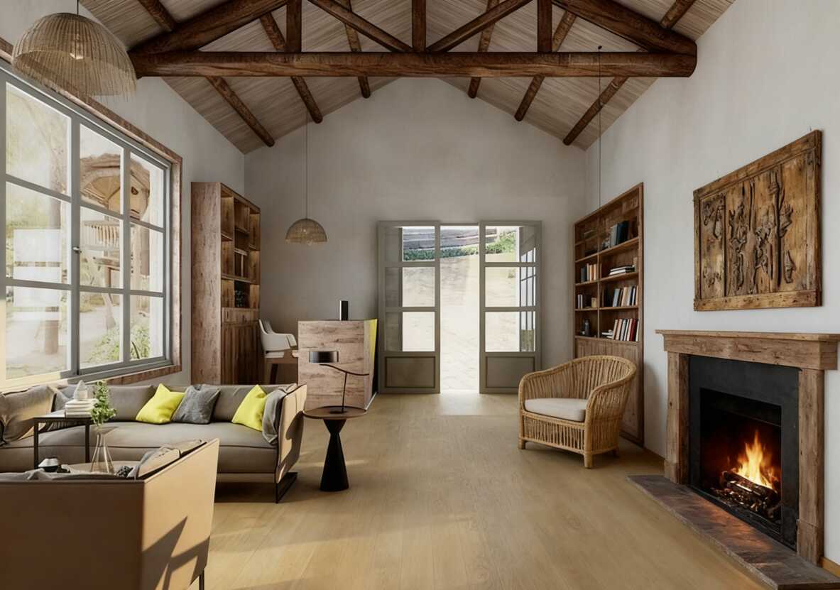 鄉(xiāng)村侘寂風民宿軟裝設計絕了!壁爐 + 原木 + 藤編,住進這里就像闖進歐洲田園電影
