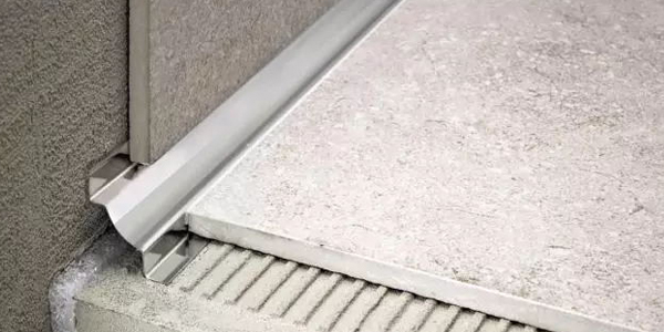 磚在陰角陽角收口時,通常采取45°角對拼的方式。這樣不僅容易崩邊、開裂,還存在一定的安全隱患。而圓潤的金屬收邊條不僅增強了裝飾效果,也一并消除了這些問題。