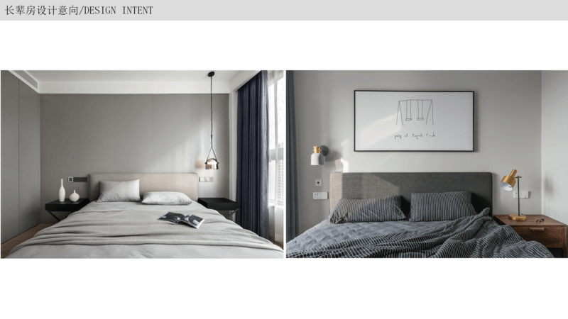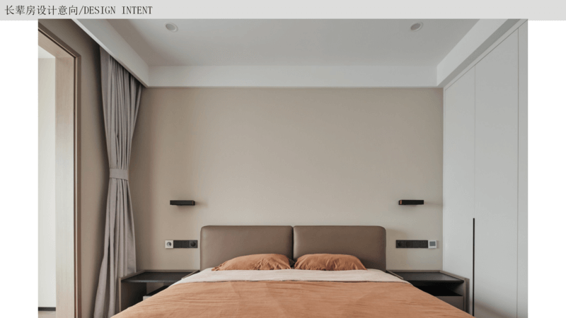 長(zhǎng)輩房 以簡(jiǎn)約大氣為主,隨著年紀(jì)的增長(zhǎng),生活需求是方便安全為主,以簡(jiǎn)單的裝飾畫為背景或者做簡(jiǎn)單軟包,整個(gè)空間顯得溫馨一些,放置床頭柜燈方便起夜,按需要增加收納即可。
