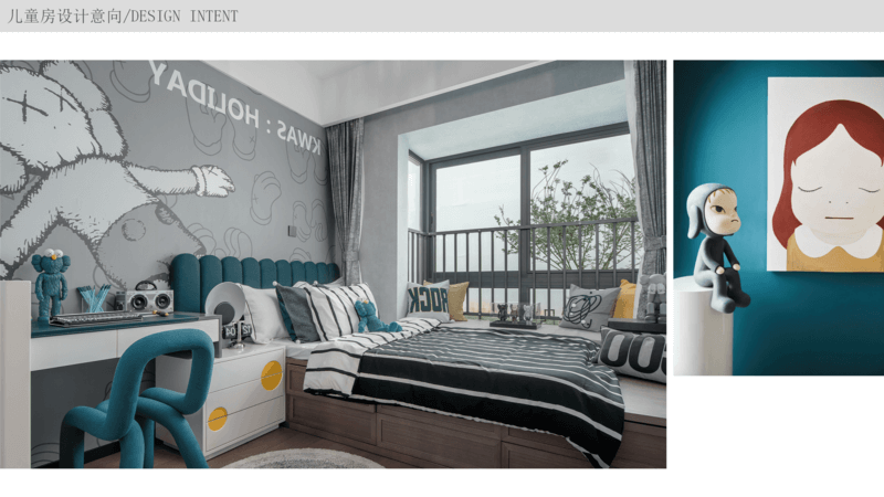 兒童房 主要以學(xué)習(xí)空間為主,用軟裝飾品來(lái)區(qū)分性別,如果業(yè)主孩子年紀(jì)較小也可以將這個(gè)房間當(dāng)做親子互動(dòng)區(qū),小孩子都比較愛(ài)創(chuàng)造,那么可以設(shè)計(jì)一面黑板墻或者積木墻用來(lái)“亂涂亂畫”。
