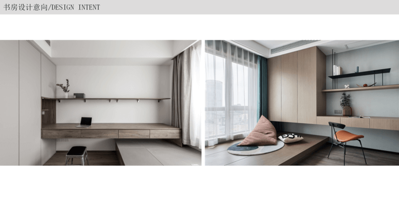 當(dāng)沒(méi)有單獨(dú)書房的前提下,一般會(huì)選擇做 客廳+書房一體化 的設(shè)計(jì),用書桌當(dāng)做隔斷,讓整個(gè)房間看上去更和諧。不僅提高了客廳的檔次感,還能一屋兩用。