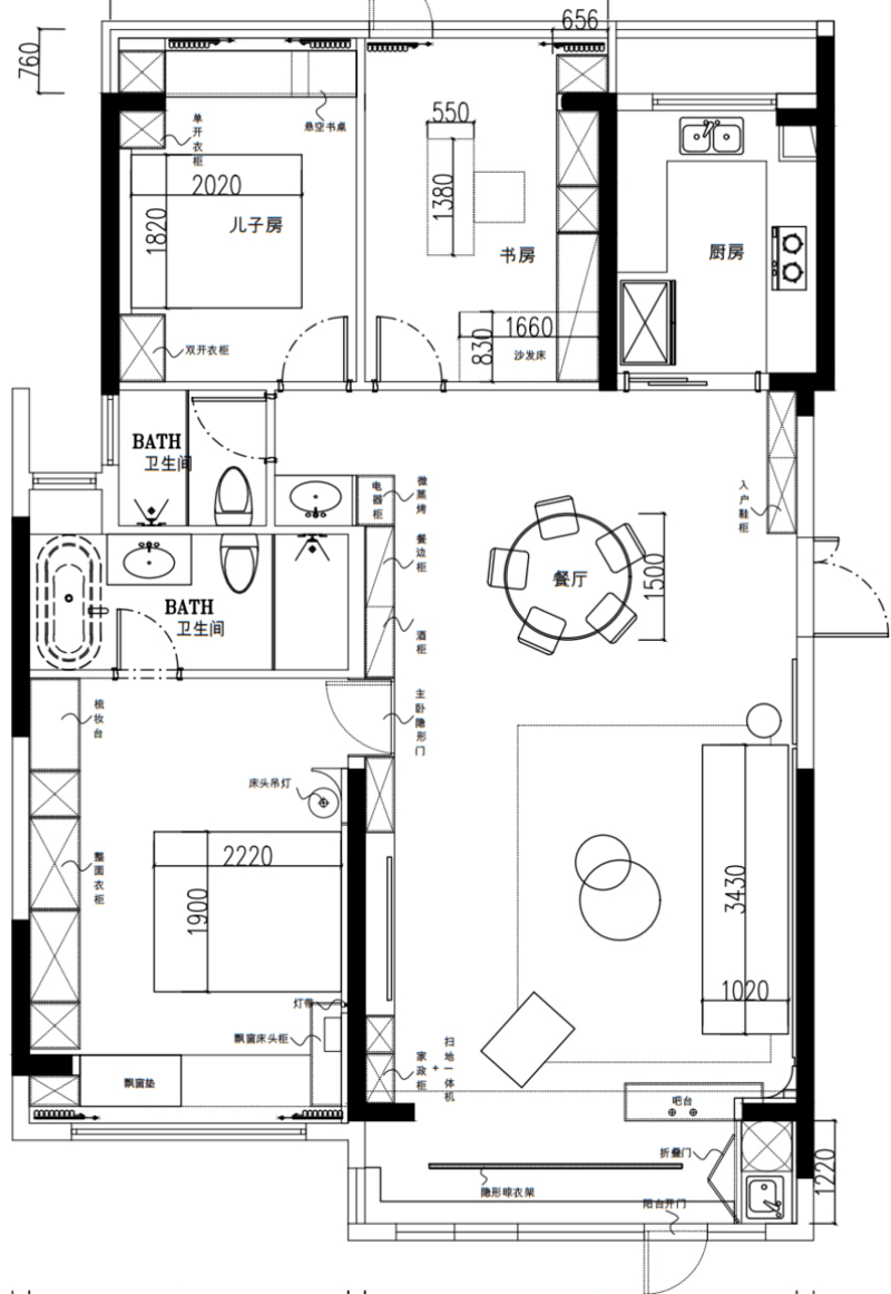 4、書(shū)房陽(yáng)臺(tái)地面找平同室內(nèi)高度,小陽(yáng)臺(tái)不封窗;增加沙發(fā)床也可以當(dāng)做臨時(shí)的房間。
