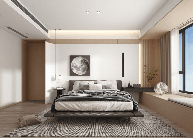 2、主臥床調(diào)換床的位置到東側(cè),離衛(wèi)生間遠(yuǎn)些;