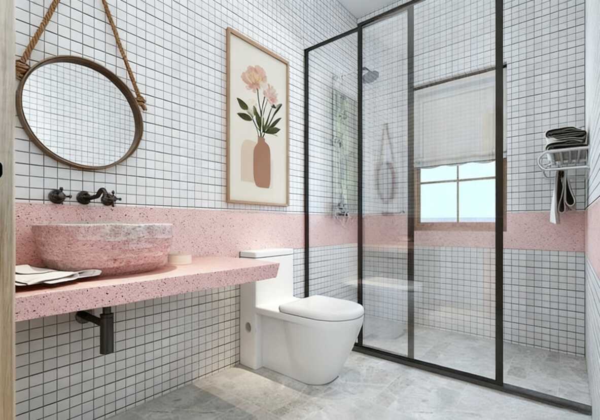 少女心暴擊!這家民宿浴室軟裝設計太會了,粉白格紋 + 復古細節(jié),洗澡都像在打卡
